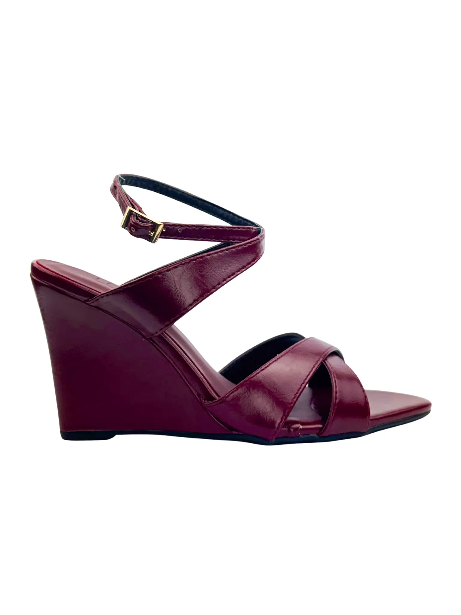 Sandália Anabela Paola Lohaz com tiras cruzadas na frente do pé e fechamento com fivela no tornozelo. Possui bico folha que alonga a silhueta e salto cunha de 10 cm com curvatura suave e afinamento elegante. Confeccionada em napa sintética premium, conta com salto encapado na cor do produto e palmilha estofada confortável. Modelo clean, minimalista e sofisticado para produções femininas e elegantes.