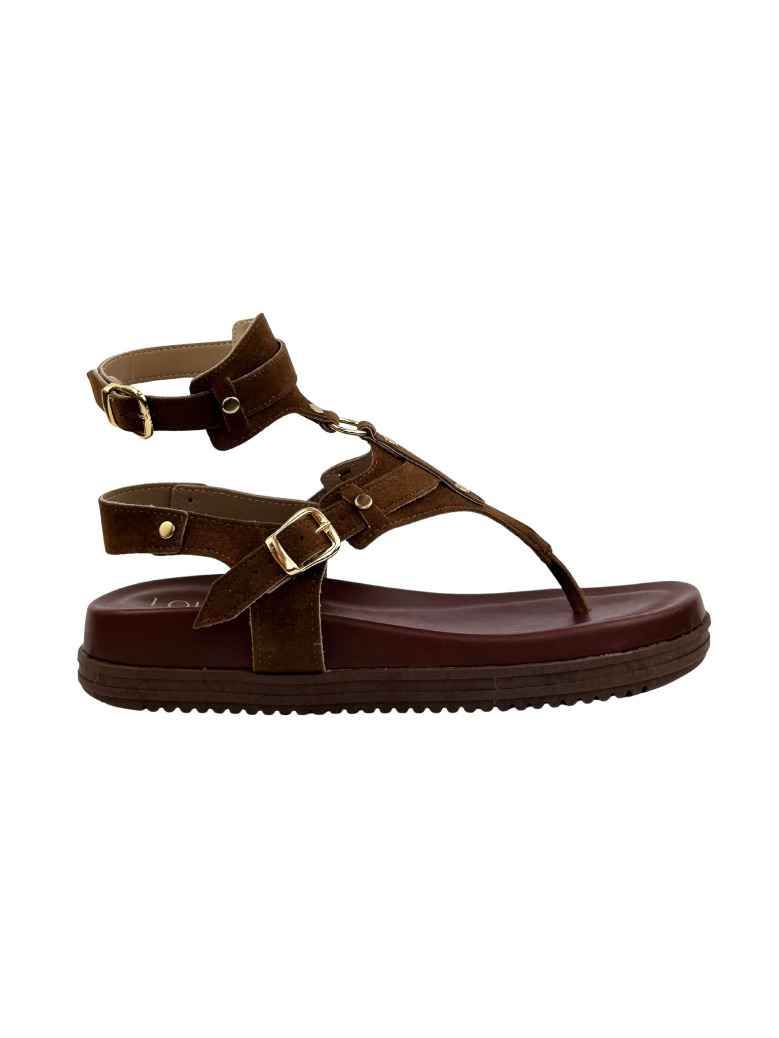 Os detalhes em fivelas douradas e metais sofisticados trazem um toque de modernidade ao estilo boho, enquanto o solado papete de 3 cm oferece altura e estabilidade na medida certa. Confeccionada em camurça sintética macia e de altíssima qualidade, a Greta garante conforto e durabilidade, com solado antiderrapante para mais segurança a cada passo.